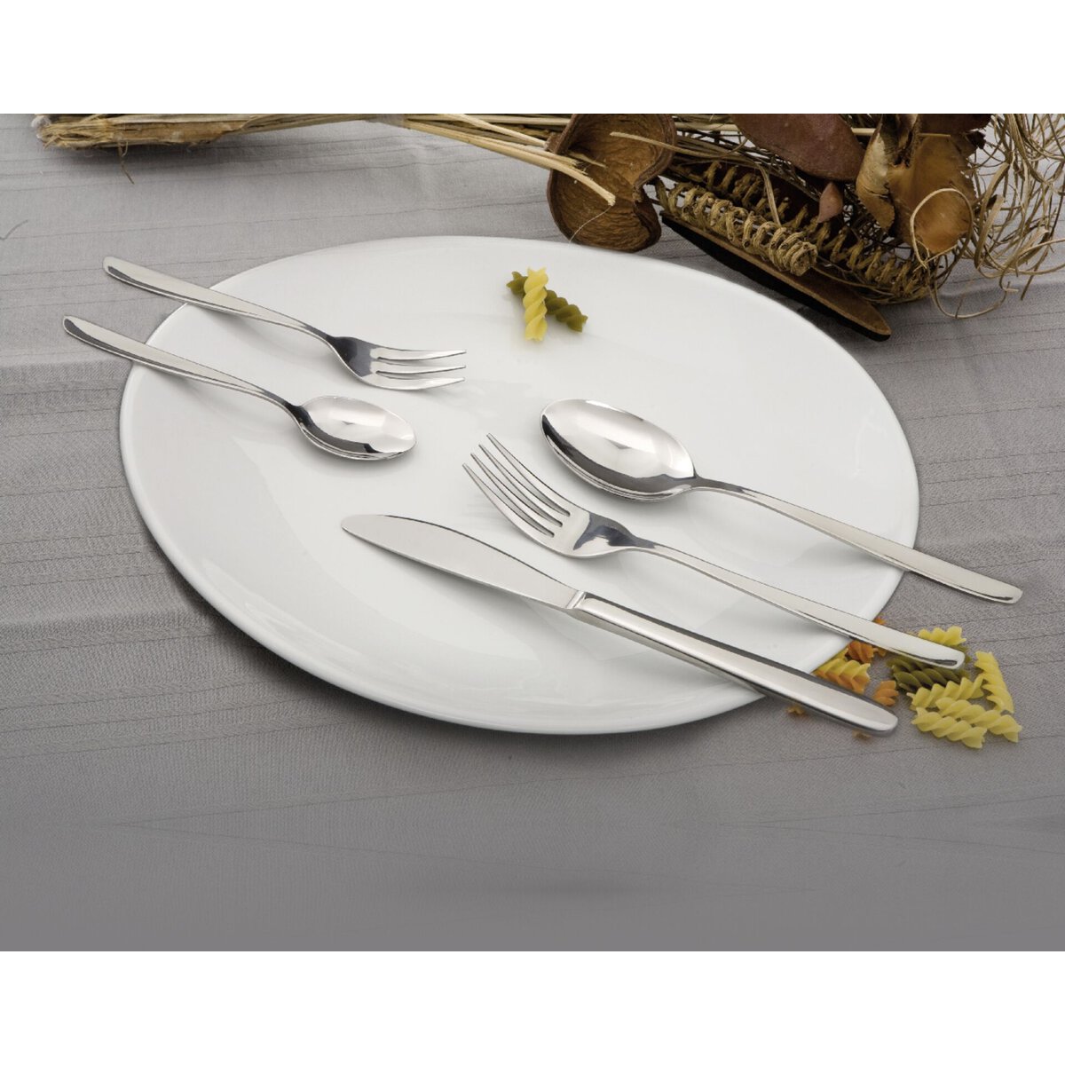 Chrom-Stahl 18/0, rostfrei, poliert. 2,2 mm stark. Ein solides Besteck für Gastronomie- und GV-Bereich.Für magnetische Fließband-Abhebung (Spültechnik, GV-Bereich) geeignet.