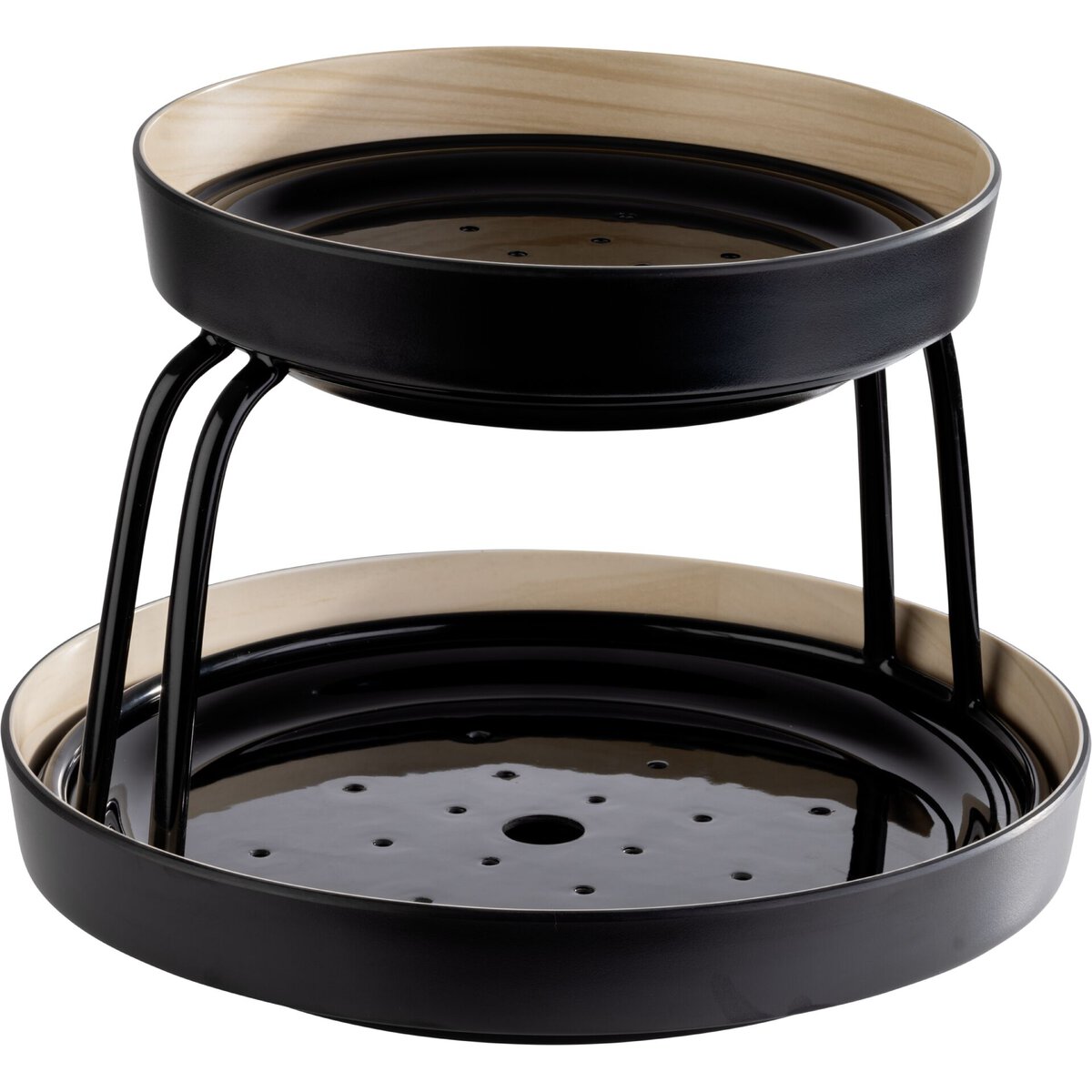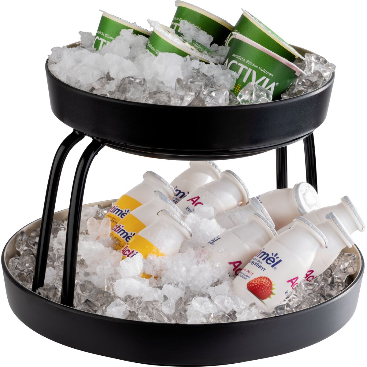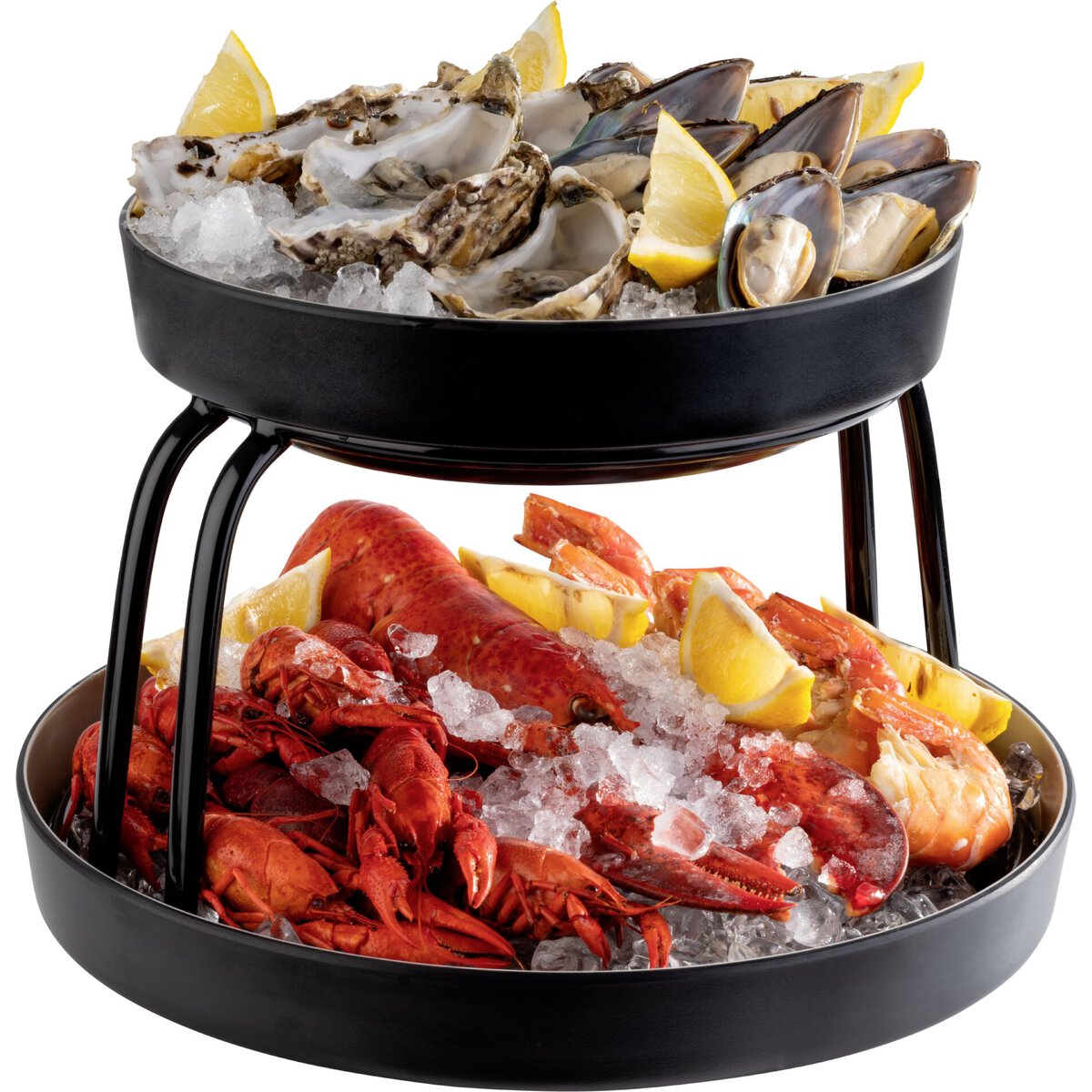Buffetständer aus Metall mit schwarzer PVC-Antirutschbeschichtung. Spülmaschinengeeignet, Stapelbar. Geeignet für Schale Art.: 16642 (oben) und 16643 (unten).