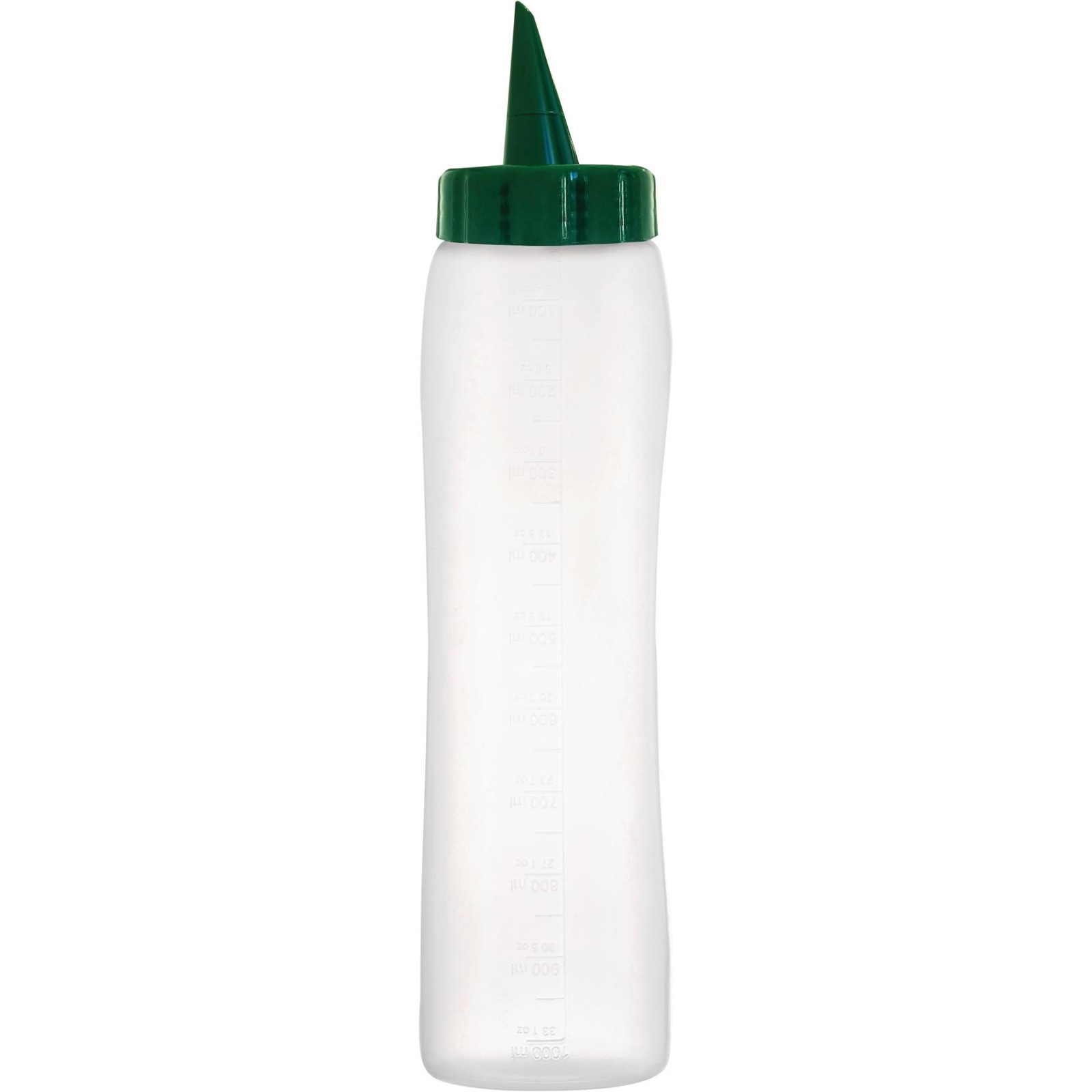 Speziell für Öle, Dressings, Sojasauce, Teriyaki, leichte Dressings, Saucen mit geringer Dichte. Die überschüssige Flüssigkeit, die durch die Düse abfließt, gelangt durch das im Deckel vorgesehene Loch in das Innere der Flasche zurück (Rücklaufsystem). Dieses Loch reguliert wiederum den Tropfenfluss bei der Abgabe. Inkl. Verschlusskappe. Deckel mit Schraubverschluss. Extra Feld für Beschriftung, sowie Datierung. Beidseitig, gespiegelte Skala in ml und oz. Einfache Reinigung. Leichte Befüllung durch große Öffnung. Ergonomischer Griff ermöglicht die Steuerung des Durchflusses durch den ausgeübten Druck. Polyethylen (LDPE): weißliches Aussehen, ohne Farbstoffe, sehr flexibel, weich und elastisch, sehr hohe Elastizitätsgrenze, stellt Form nach Verformung wieder her, gute mechanische und optische Eigenschaften. Temperaturbereich -40°C bis +90°C. Spülmaschinengeeignet.