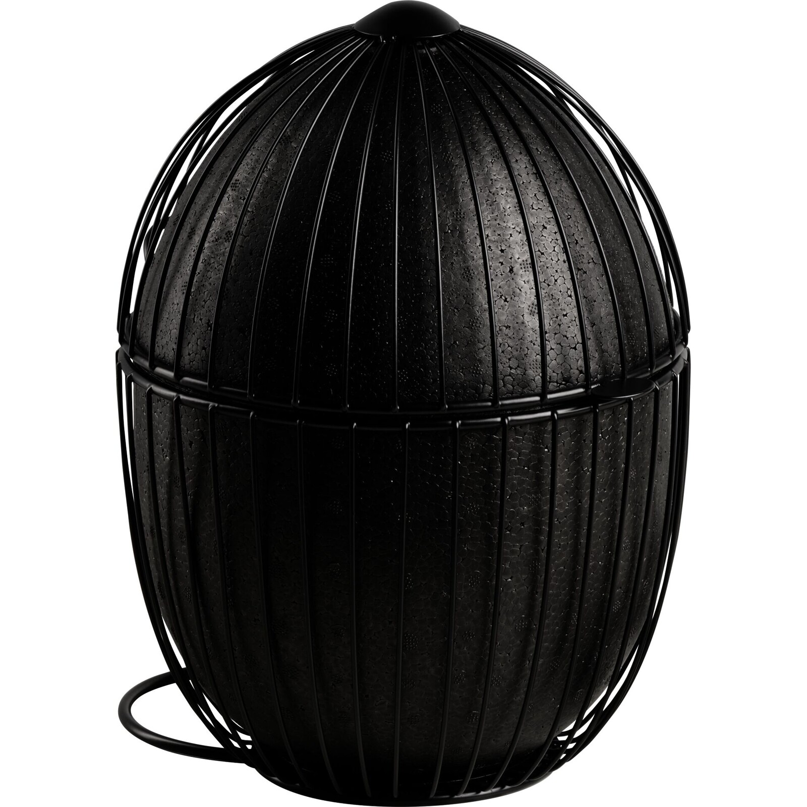Metall, schwarz, EPP, Baumwolle. Für ca. 35 Eier. Stoffeinsatz feucht abwischbar. Nicht Spülmaschinengeeignet.