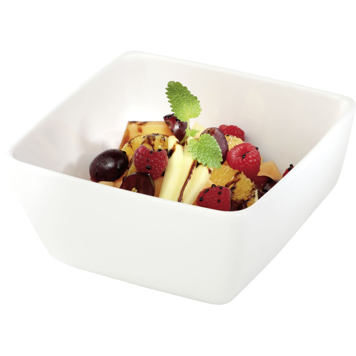Stapelbare Schale aus recyceltem PET. Temperaturbeständig von -30° bis +55° C. Lebensmittelecht, geruchs- und geschmacksneutral, bruchfest, besonders hygienisch durch abgerundete Ecken und Kanten, spülmaschinengeeignet. Glänzende Oberfläche wie Porzellan. Zu 100% recycelbar.