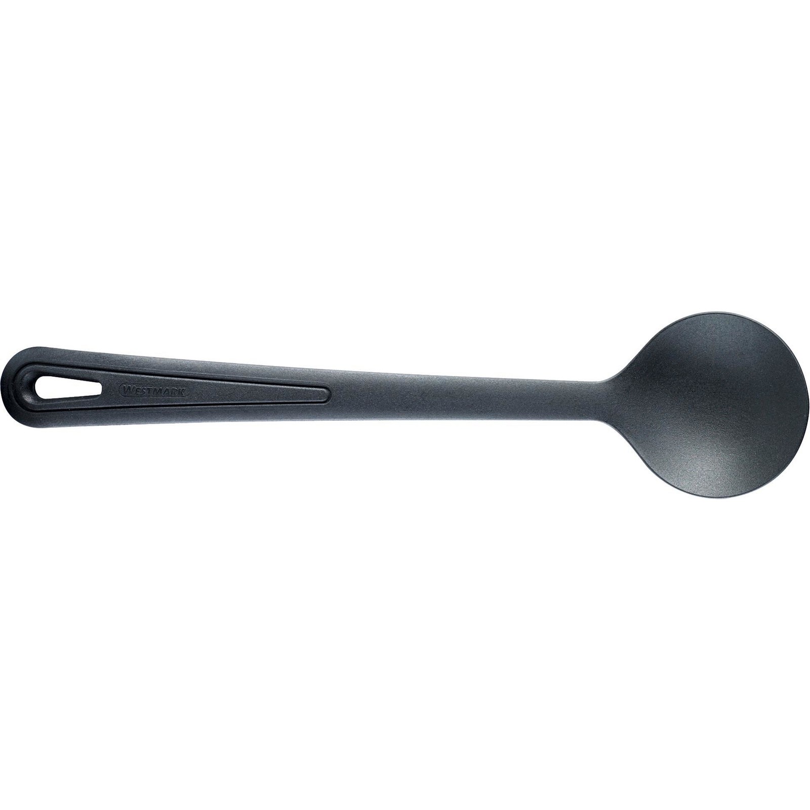Polyamid, schwarz, hitzebeständig bis 210°C. Nicht in heißen Töpfen und Pfannen liegen lassen!