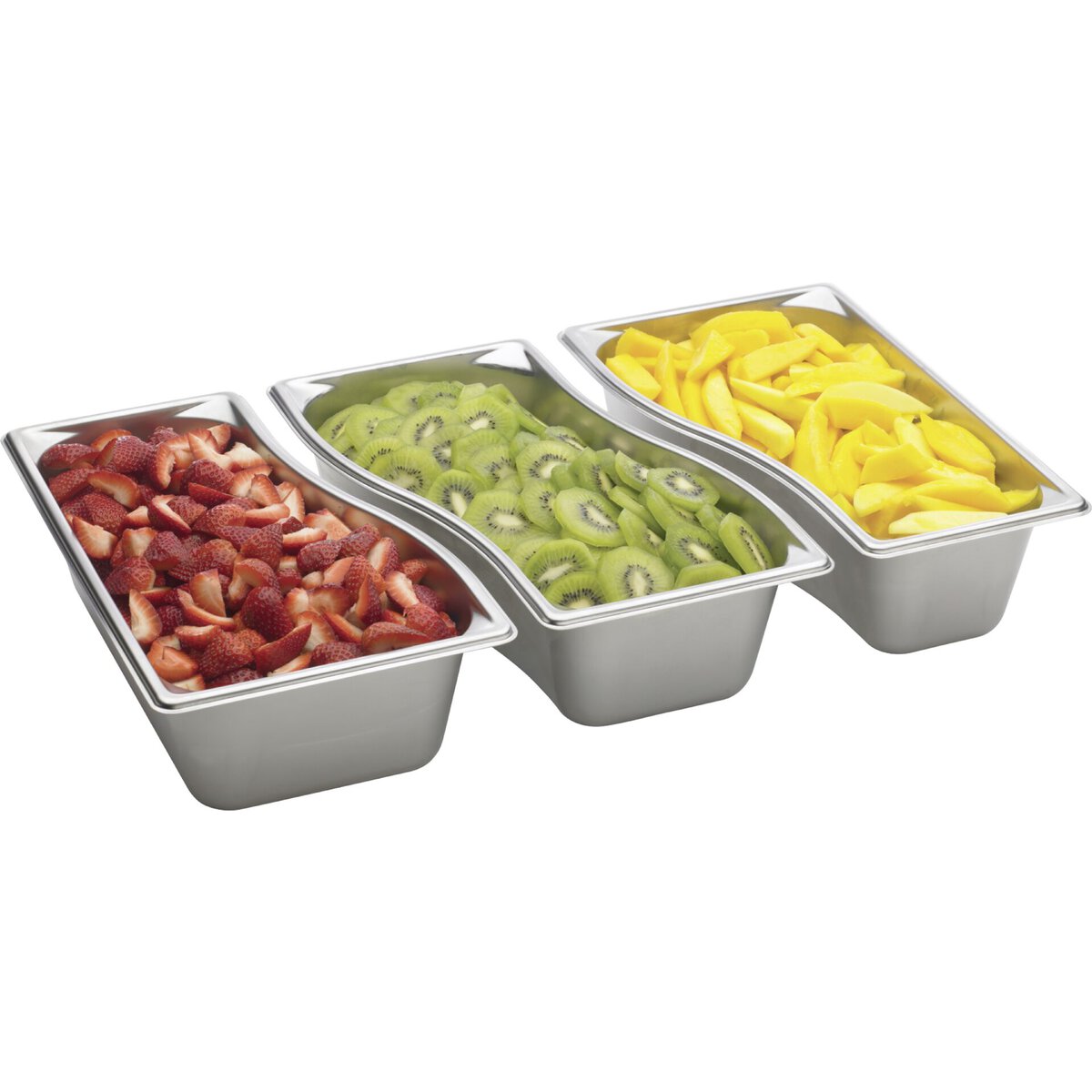 Behälter in Wellenform. CNS Serie 300, Materialstärke 0,64 mm. Verstärkte Ränder und Ecken sorgen für mehr Stabilität und reduzieren den Temperaturverlust.