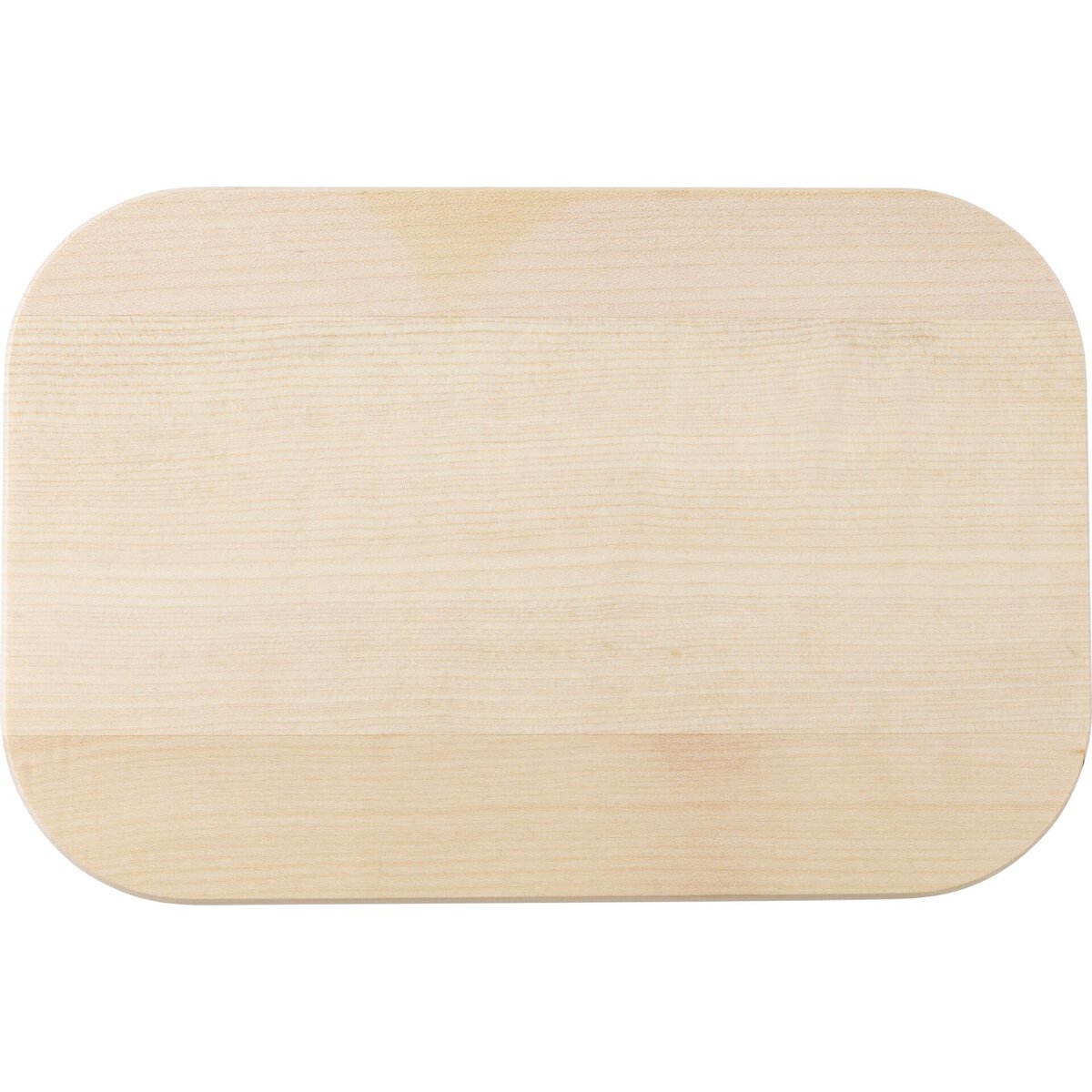 Holz Ahorn (unbehandelt). Ecken gerundet. Nicht spülmaschinengeeignet!
