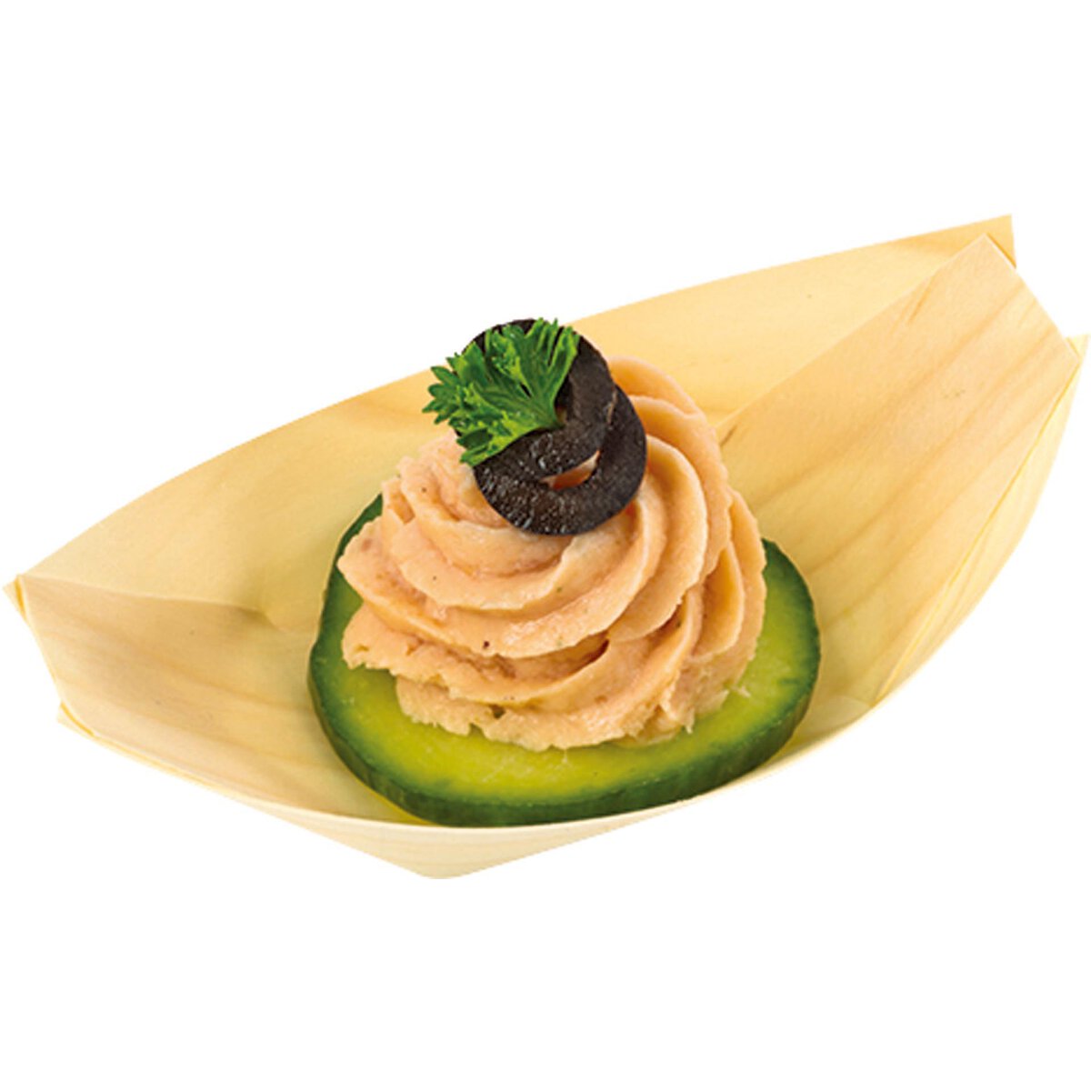 Pinienholz. Kompostierbar, temperaturbeständig: 80° C. Nicht geeignet für Backofen, Mikrowelle und Tiefkühlung. Im 100er Pack.