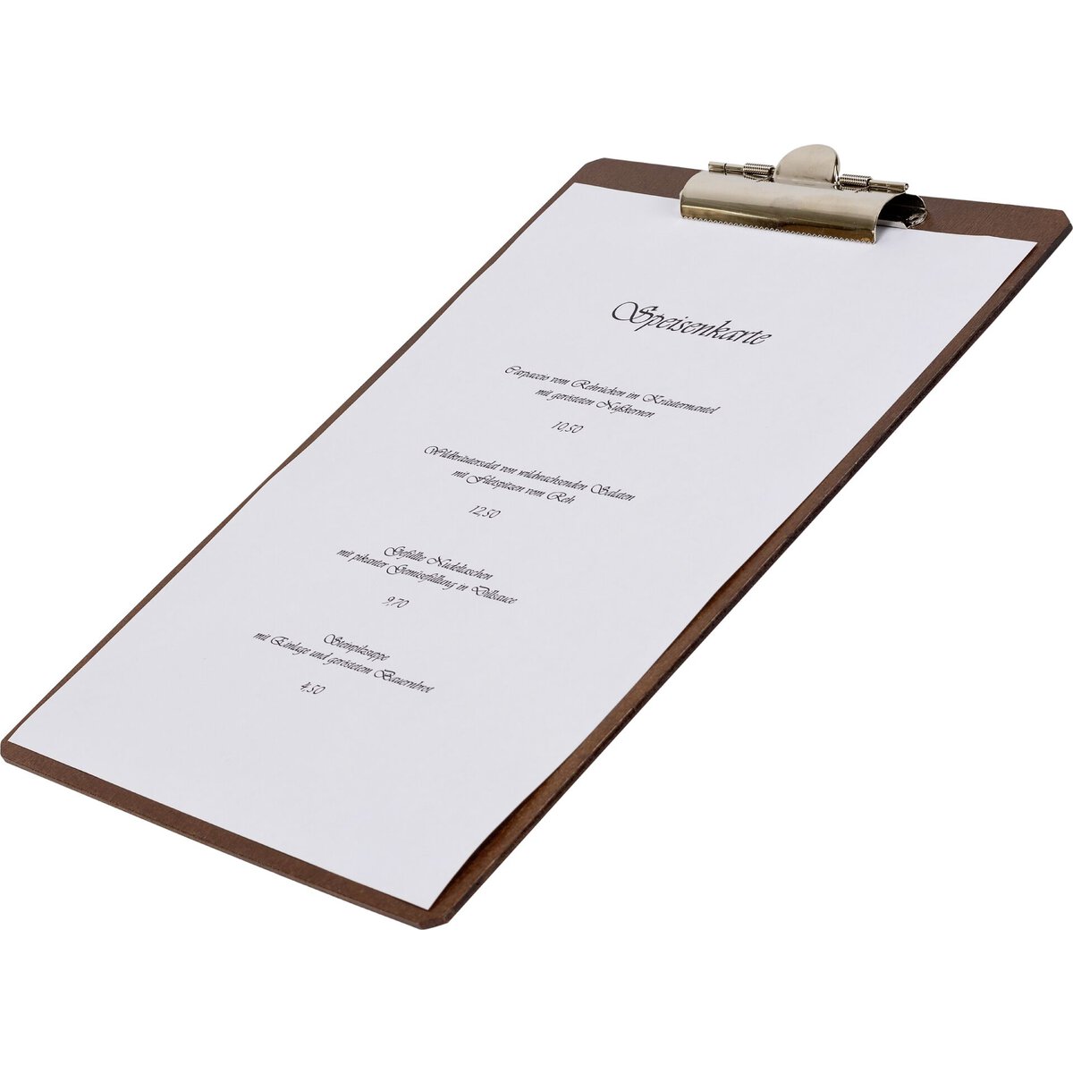 Klemmbrett aus Birkenholz für Speisekarten, Tageskarten, Getränkekarten o. Ä. bis Größe A4. Maße 32x22x0,3 cm.
