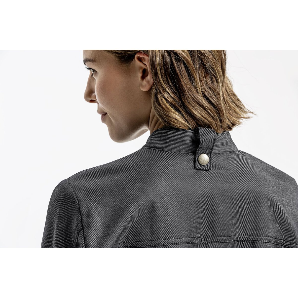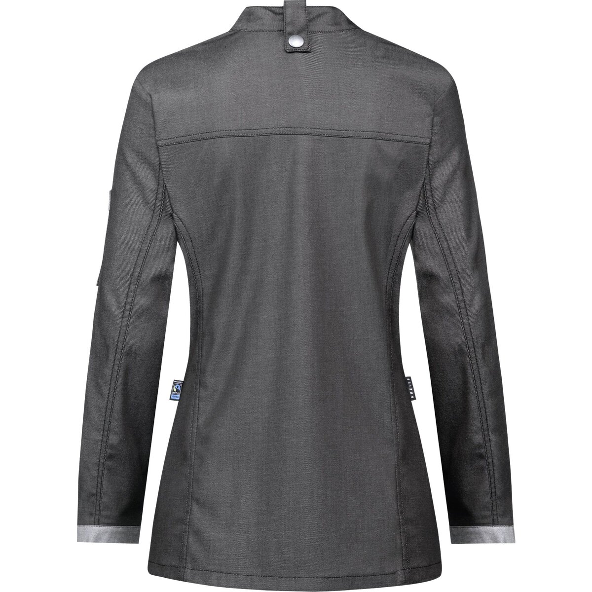Farbe: anthrazit. Denimoptik. 52% Baumwolle, 45% Polyester, 3% Elastolefin, 240 g/m². Regular fit. Elastisch, Stretch. Metalldruckknöpfe. Schulterpasse mit Ziernähten. Krempelarm. Armtasche mit Logo. Lüftungslöcher. Passe im Rücken. Die gesamte Baumwolle ist Fairtrade zertifiziert. Somit auch Produktion im Fairtrade auditierten Betrieb. Waschen: Normalwaschgang 60°C, Bleichen: nicht bleichen, Trocknen: Trocknen im Tumbler, niedrige Temperatur, 60°C, normaler Trocknungsprozess, Bügeln: Bügeln mit einer Höchsttemperatur der Bügeleisensohle von 150°C, prof. Textilpflege: professionelle Trockenreinigung, normaler Prozess.