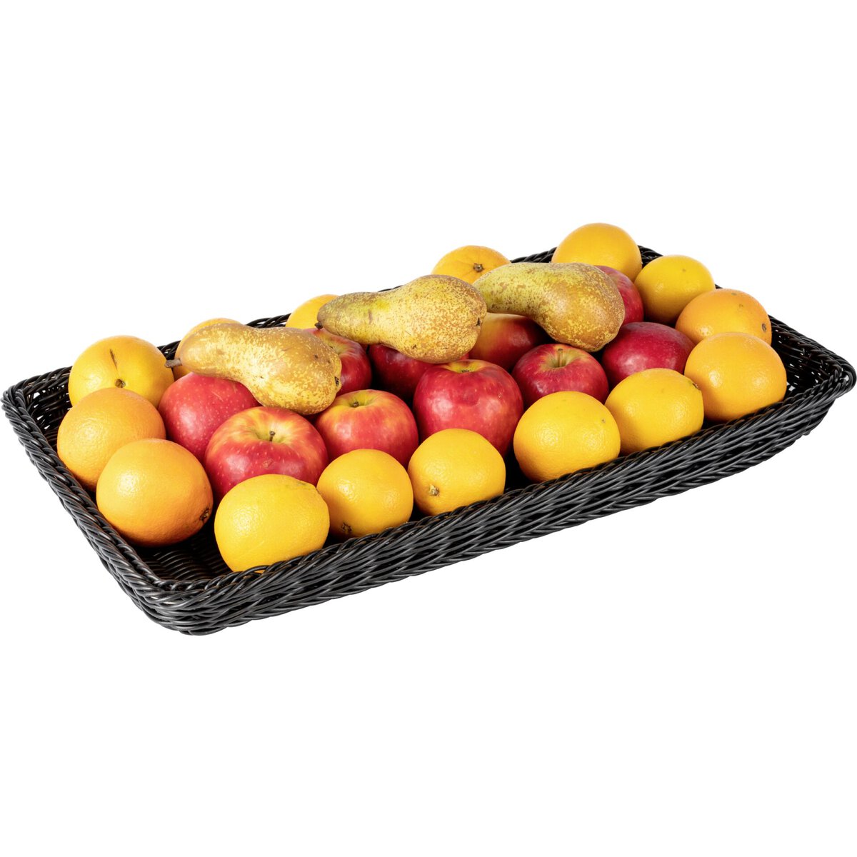 Polypropylen, schwarz. Stabile Qualität mit natürlicher Haptik. Verstärkter Rahmen aus Edelstahl. Spülmaschinengeeignet. Stapelbar. Hygienisch.