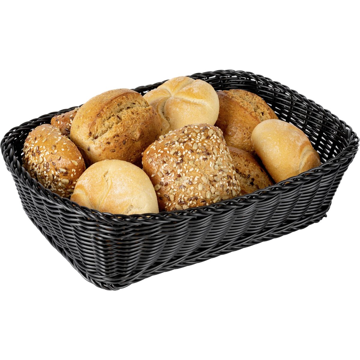 Polypropylen, schwarz. Stabile Qualität mit natürlicher Haptik. Verstärkter Rahmen aus Edelstahl. Spülmaschinengeeignet. Stapelbar. Hygienisch.