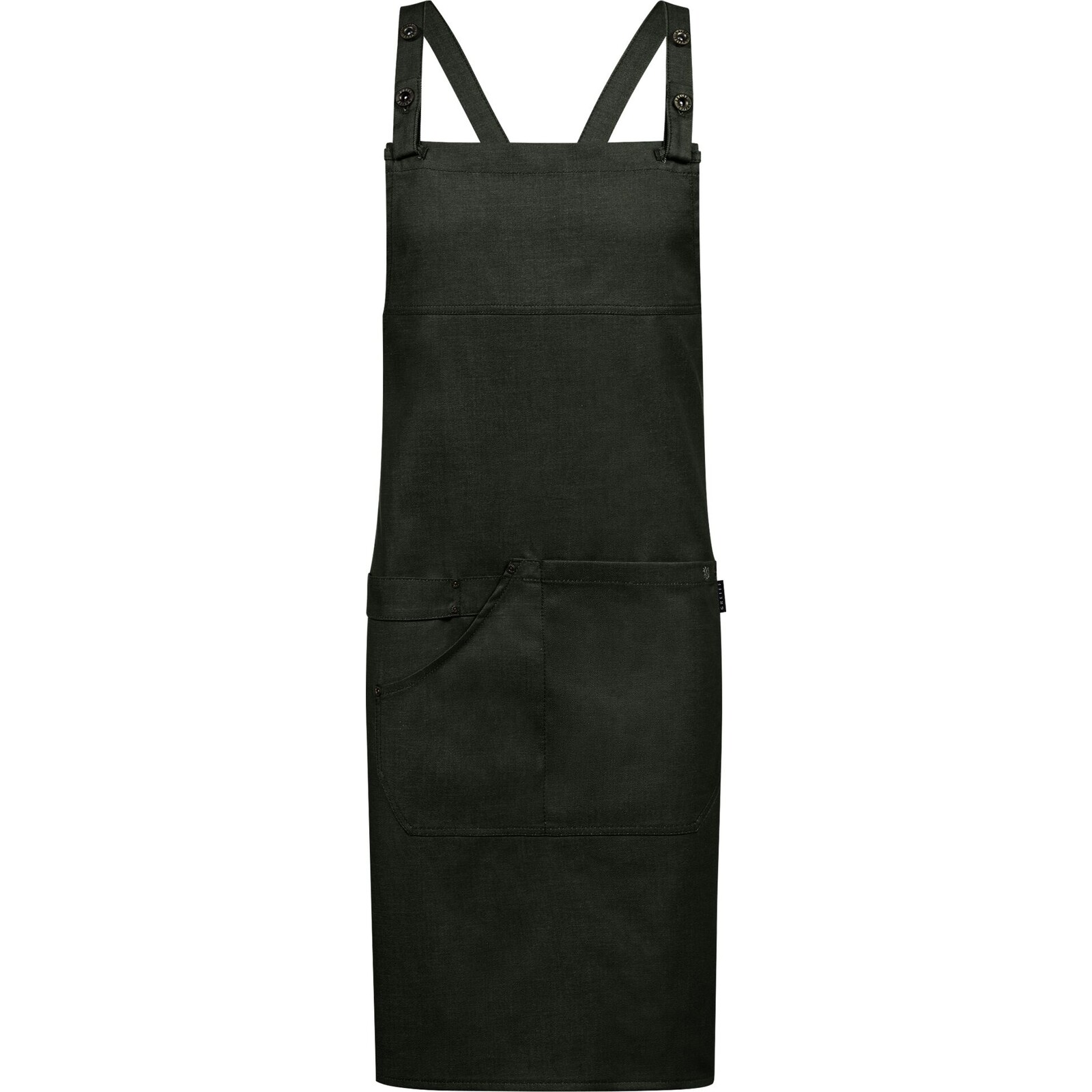 Denimoptik, Breite/Länge 77x85cm, aufgesetzte Taschen, verstellbares Latzband, Geschirrtuch-Schlaufe, Onesize. Gewebe: 52% Baumwolle, 45% Polyester, 3 % Elastolefin.