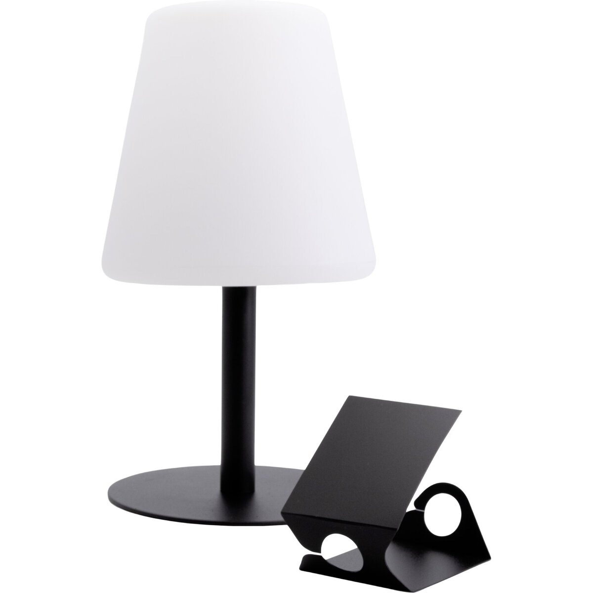 Tischleuchte mit integr. LED und Akku, schwarz. Dimmbar. Wasserdicht nach IP44. Inkl. magnetischem USB Schnellladekabel. Lichttemperatur: 3000K. Inkl. 3 aufsteckbarer Kreidetafeln.