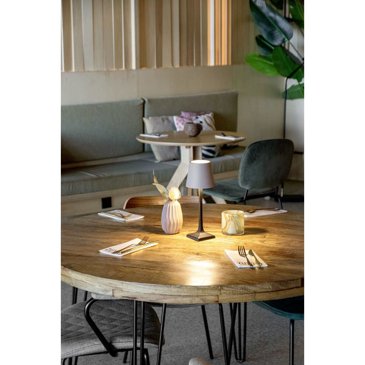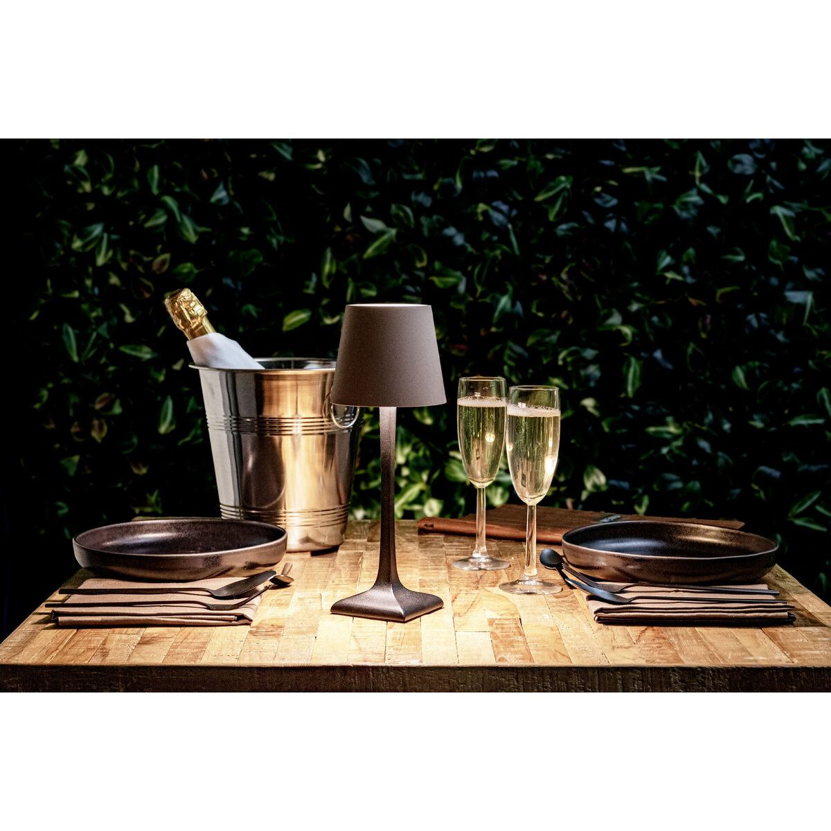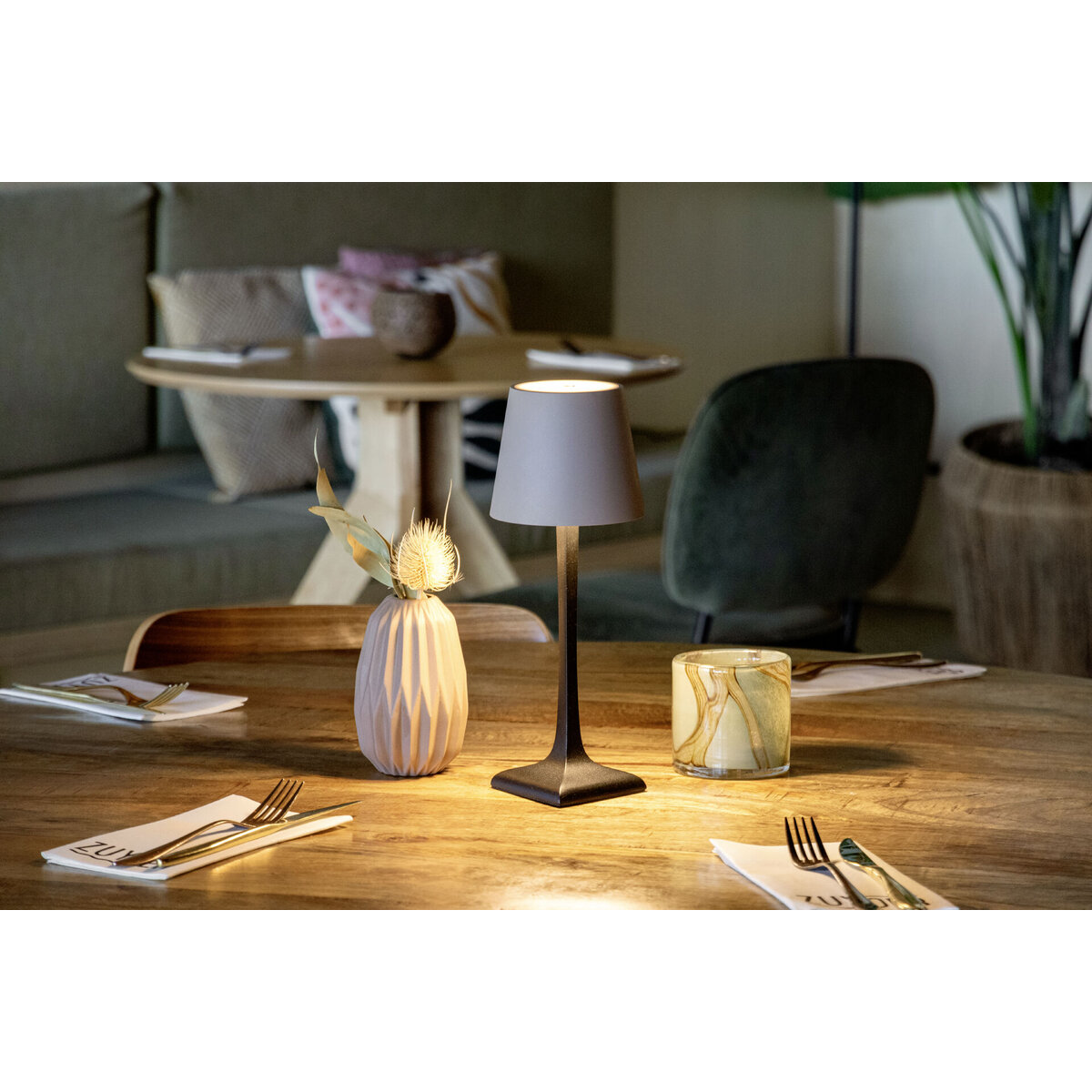 Tischleuchte mit integr. LED und Akku, schwarz/grau. Stufenlos dimmbar. Wasserdicht nach IP54. Inkl. magnetischem USB Schnellladekabel. Lichttemperatur: 2800K.