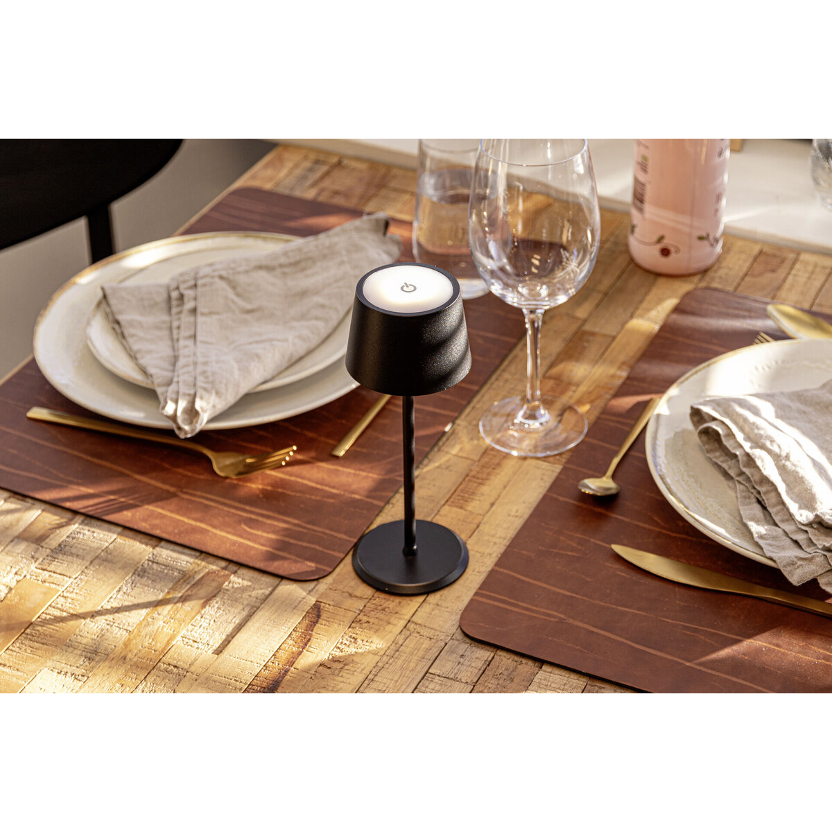 Tischleuchte mit integr. LED und Akku. Stufenlos dimmbar. Wasserdicht nach IP54. Inkl. magnetischem USB Schnellladekabel. Lichttemperatur: 2700K.