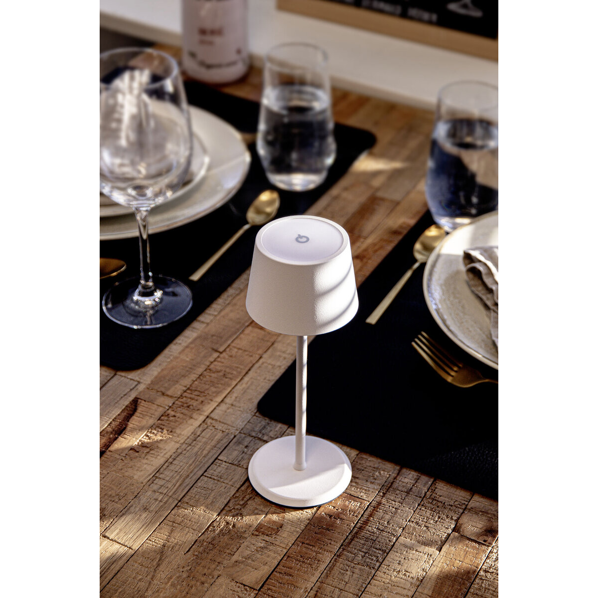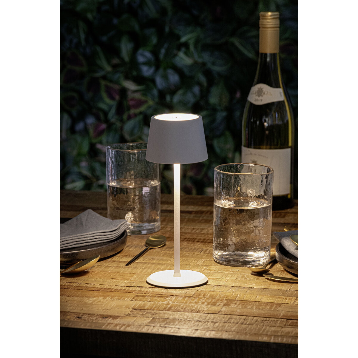 Tischleuchte mit integr. LED und Akku. Stufenlos dimmbar. Wasserdicht nach IP54. Inkl. magnetischem USB Schnellladekabel. Lichttemperatur: 2700K.