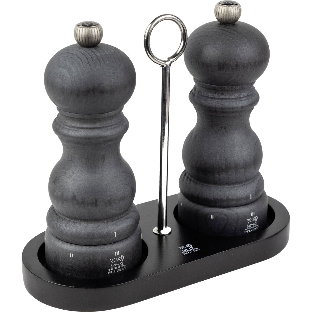 Die besondere Gewürzmühlen-Menage von Peugeot eignet sich perfekt für Ihr Lieblings-Salz- und Pfeffermühlenset. Dank der praktischen Menage können Sie Ihre Mühlen schnell und sicher transportieren. Ob auf dem Esstisch oder neben dem Herd, ist die Menage ein Blickfang dank des hochwertigen Bambusholzes in edler, schwarzer Lackierung. Hinterlassen Sie keine Gewürzrückstände mehr auf ihrem Tisch mit der neuen Menage für Salz- und Pfeffermühlen von Peugeot! Passend für alle Mühlen mit einer Höhe von max. 18cm und einen Ø von max. 6,5cm.