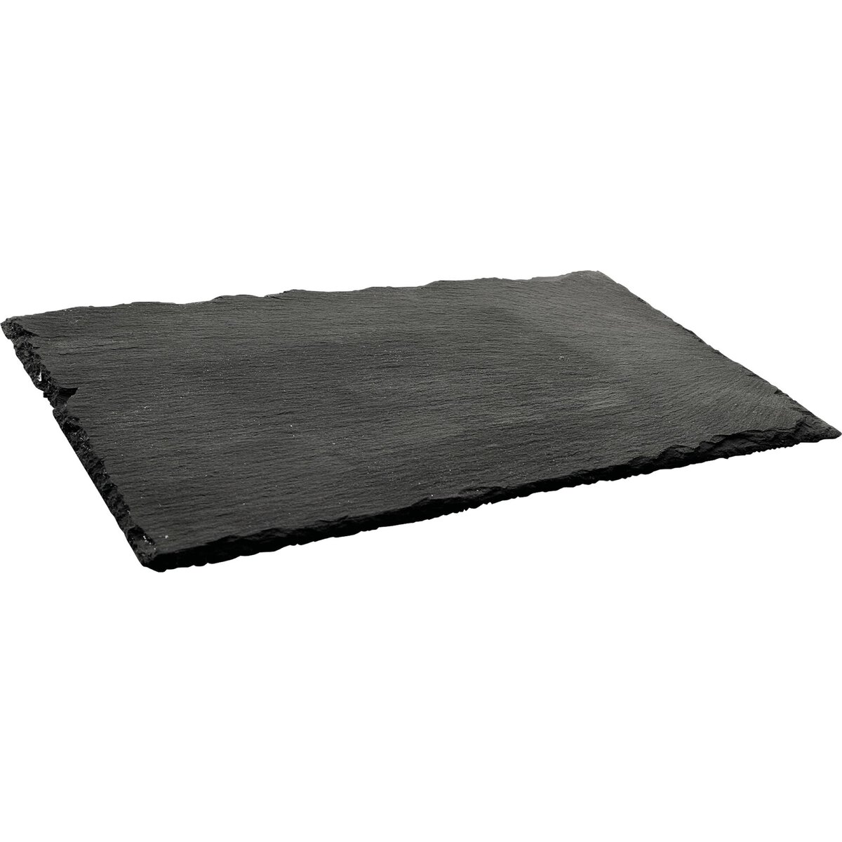 Naturschiefer. Mit Antirutsch-Füßchen. Versiegelt mit lebensmittelechtem Speziallack. Fett- und wasserdichte Oberfläche. Gebrochene Kante. Hervorragende Kältespeicherung durch Naturschiefer. Nicht spülmaschinengeeignet!