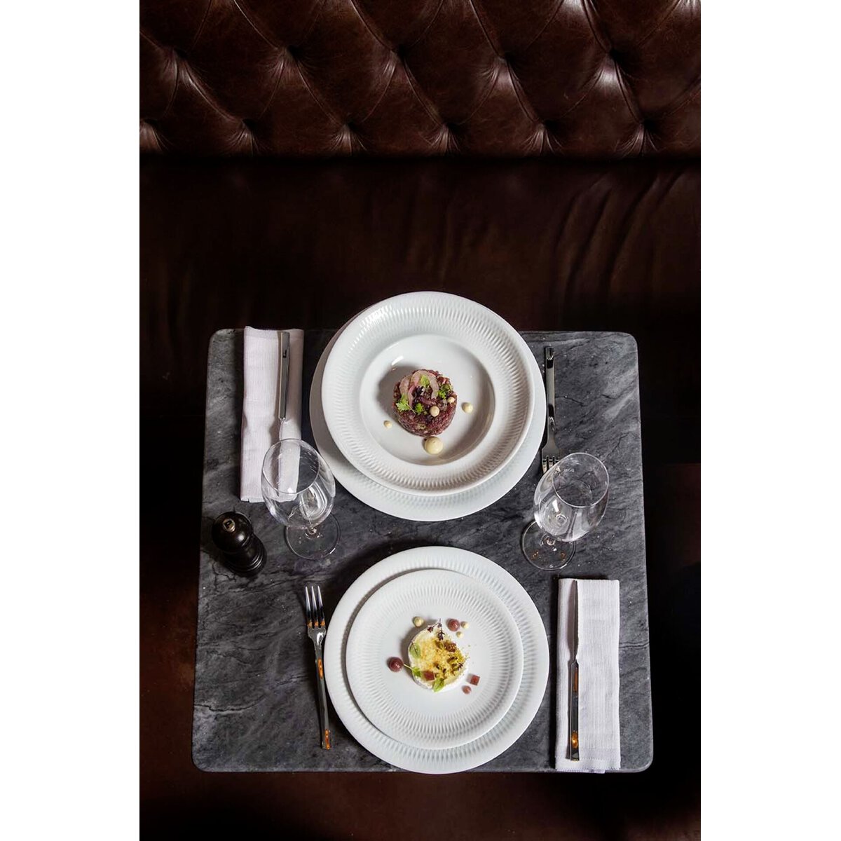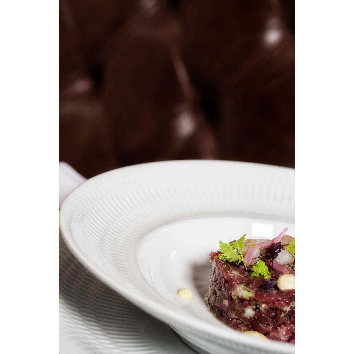 Porzellan, weiß. Mit Relief-Dekor. Mischsortierung. Spülmaschinengeeignet.