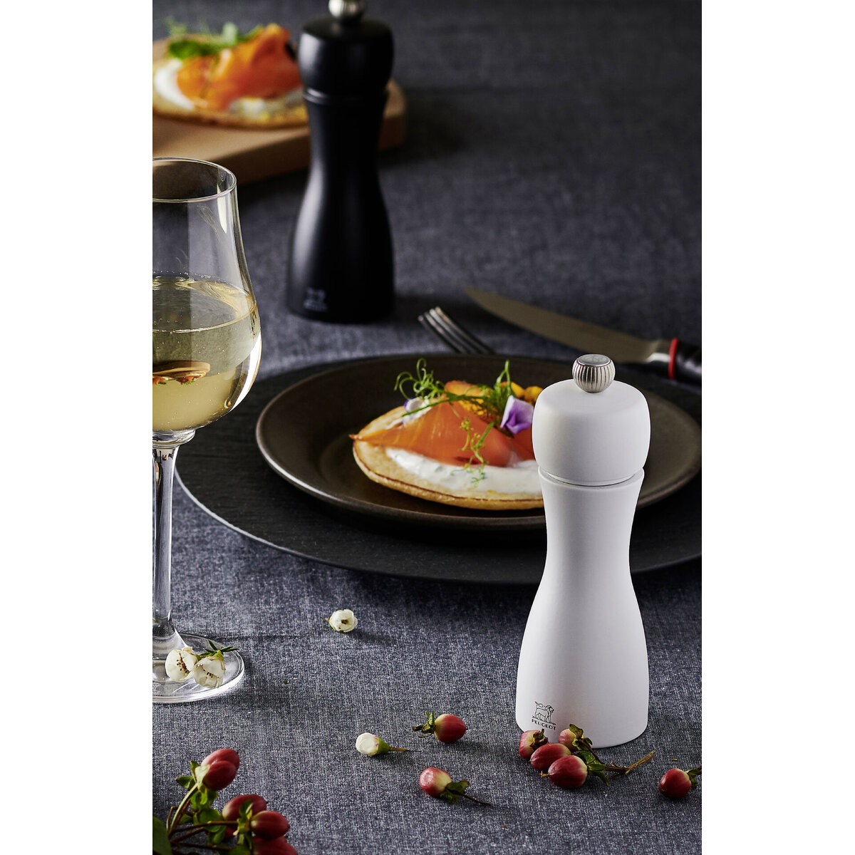 Das Tahiti-Duo, bestehend aus Pfeffer- & Salzmühle, überzeugt durch die schlanke, moderne Form. Die klassische Unterteilung in Schwarz und Weiß sorgt dafür, dass Pfeffer- & Salzmühle leicht zu unterscheiden sind und verleiht Ihrer Küche einen eleganten Look. Durch den Knopf der Gewürzmühlen können Sie den Mahlgrad auf Ihre persönliche Perfektion einstellen. Buchenholz. Mahlwerk (Pfeffermühle) aus Stahl, (Salzmühle) aus Edelstahl. Nicht spülmaschinengeeignet.