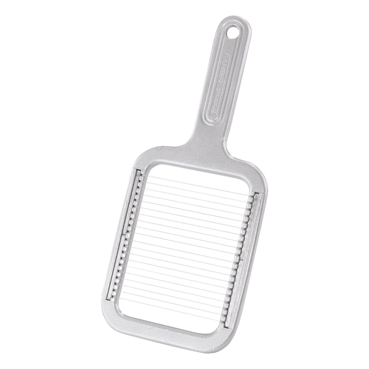 Aluminium beschichtet, Edelstahl-Schneiddrähte. Schneidet gekochte Karfoffeln schnell in gleichmäßige Scheiben. Auch für Eier, Mozzarella, gekochten Sellerie, Rote Beete, etc. Mit lebensmittelechter Spezialbeschichtung. Nicht spülmaschinengeeignet.