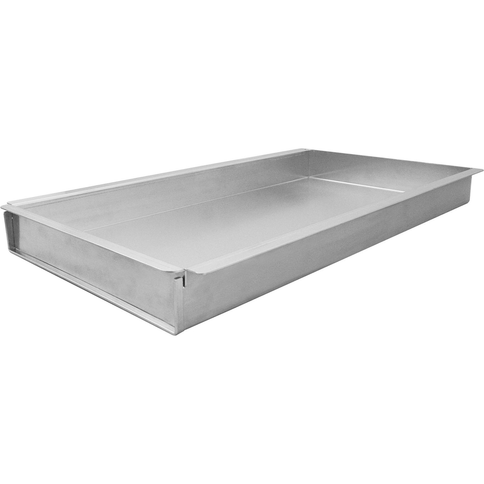 Aluminium mit Vorsatzschiene. Materialstärke 1 mm. Innenmaße ca.: 52 x 29 x 5 cm. Spülmaschinengeeignet.