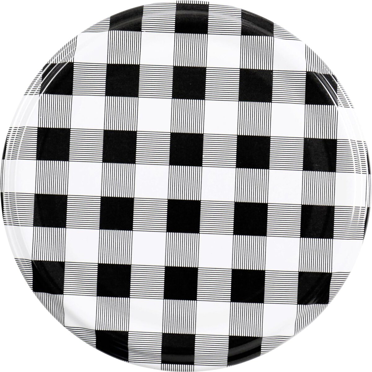 Glas. Mit schwarz-weiß kariertem Deckel.