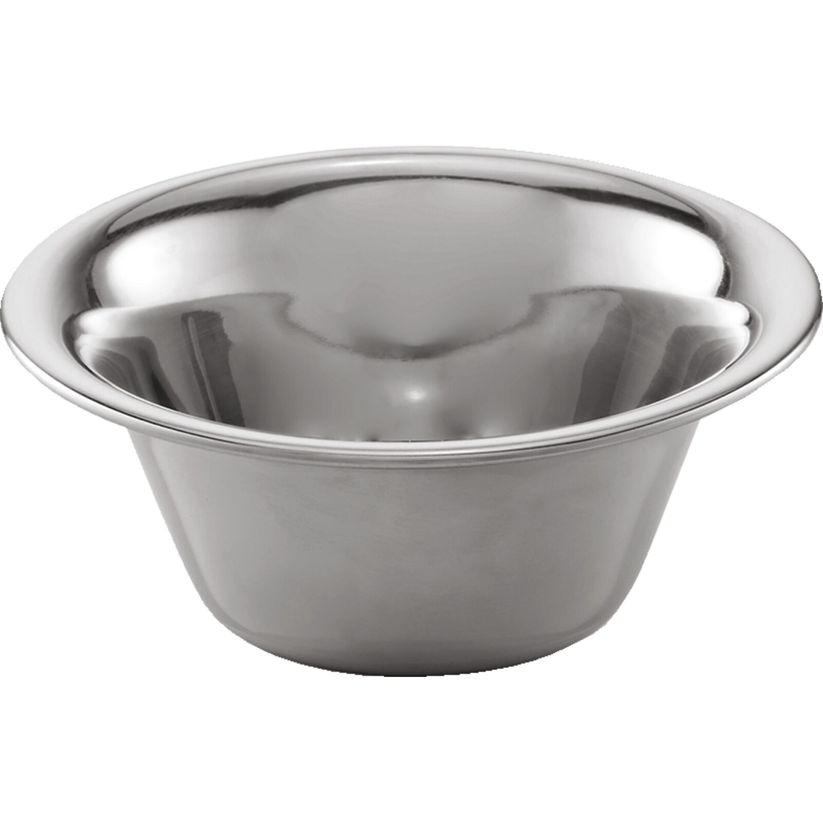 Schüssel aus Chromnickelstahl. Rostfrei. Konische Form, mit bordiertem Rand.