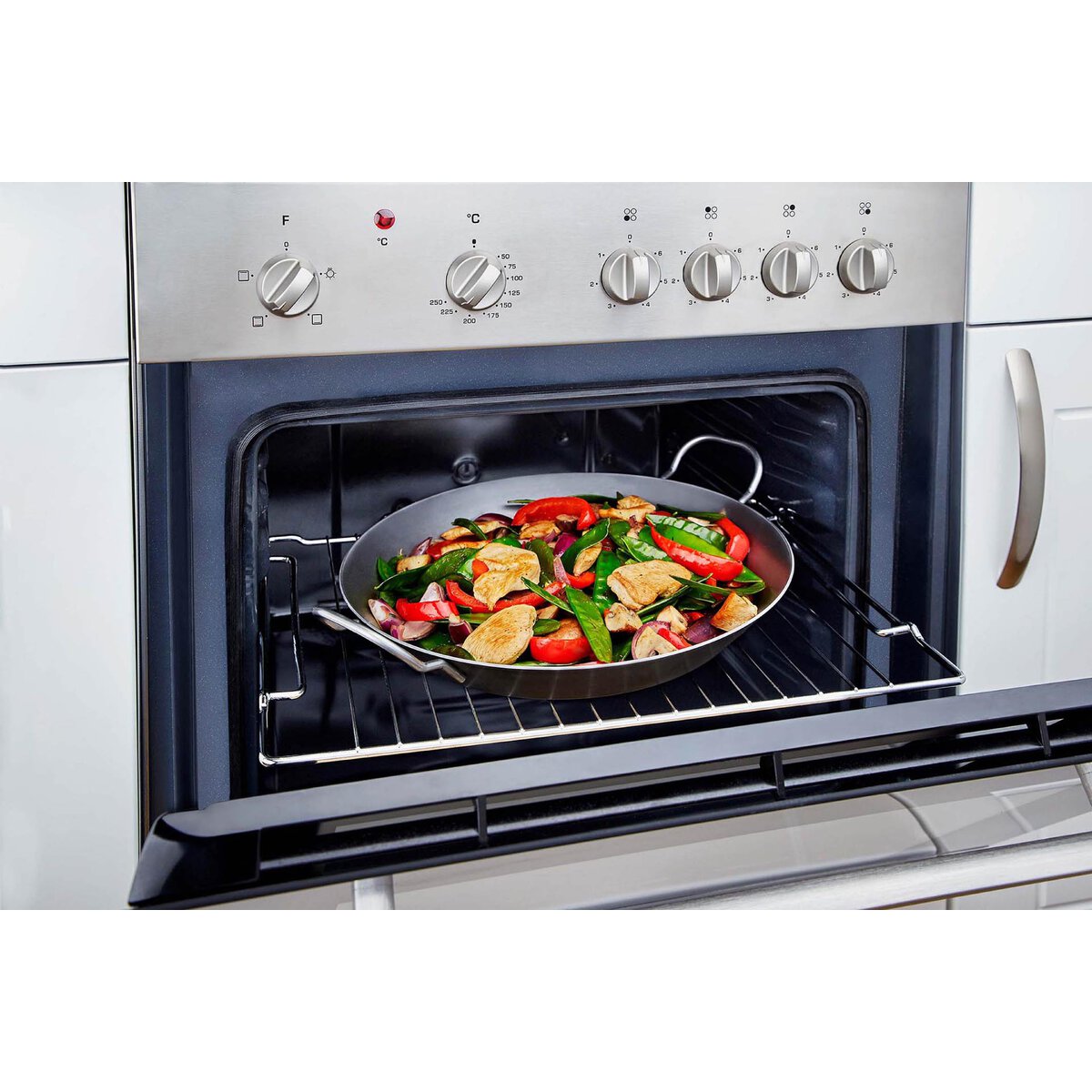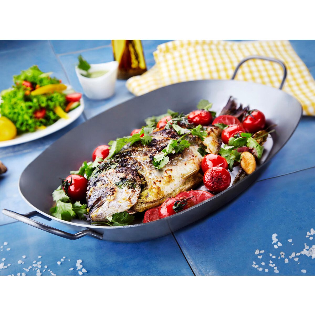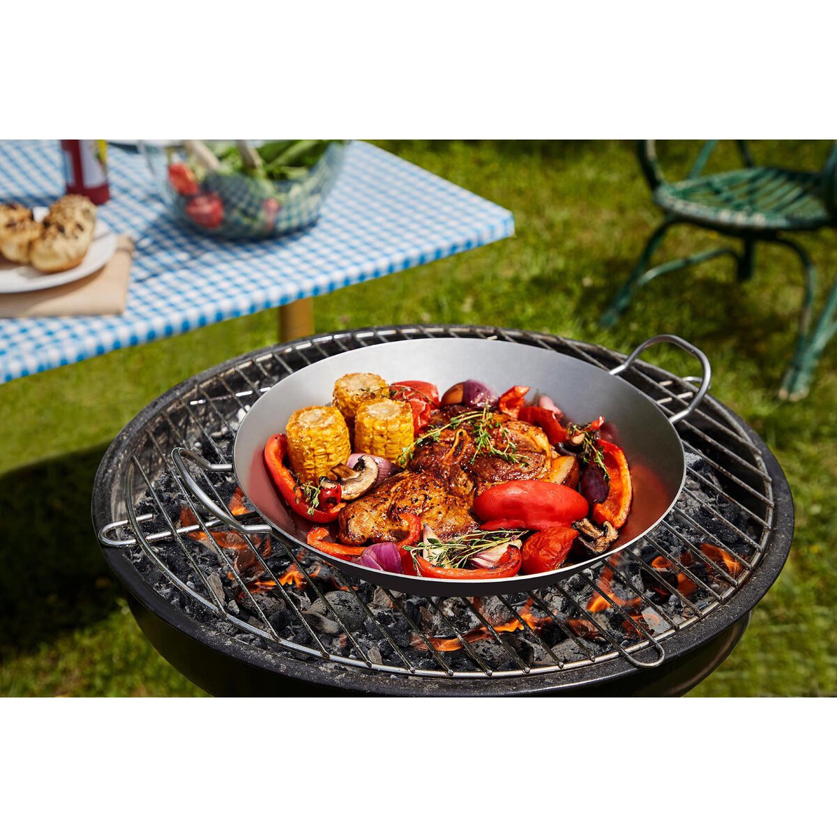 Mit 2 Griffen. Aus Eisen, 2 mm stark. Für alle Herdarten, Backofen, Gas-/ Holzkohlegrill und offenes Feuer geeignet. Nicht spülmaschinengeeignet.