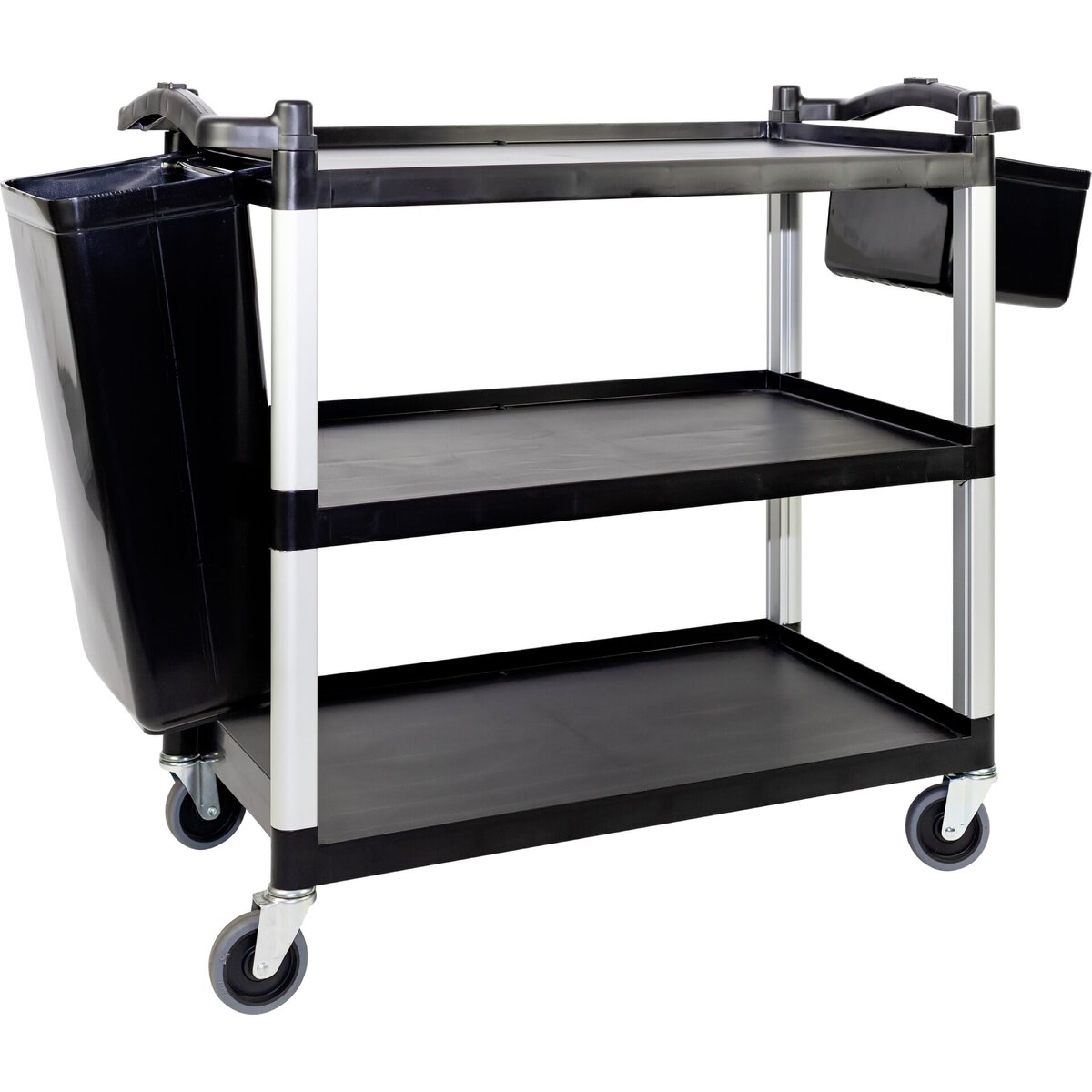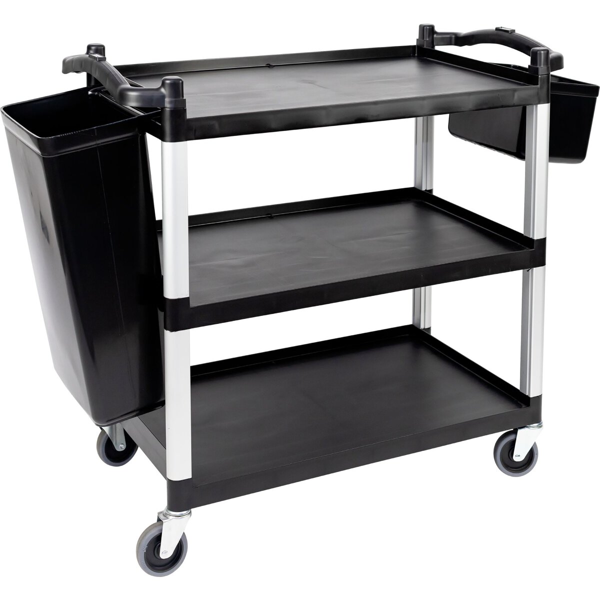 PP. Schwarz. Robuster Behälter zum Einhängen am obersten Bord unseres Servierwagens.