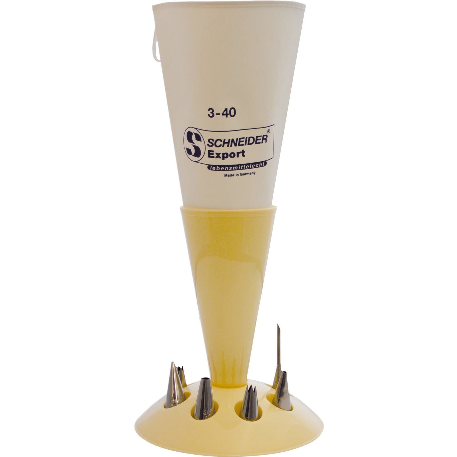 PP, elfenbeinfarben. Stabil mit Aussparungen für 4 große und 4 kleine Tüllen.
