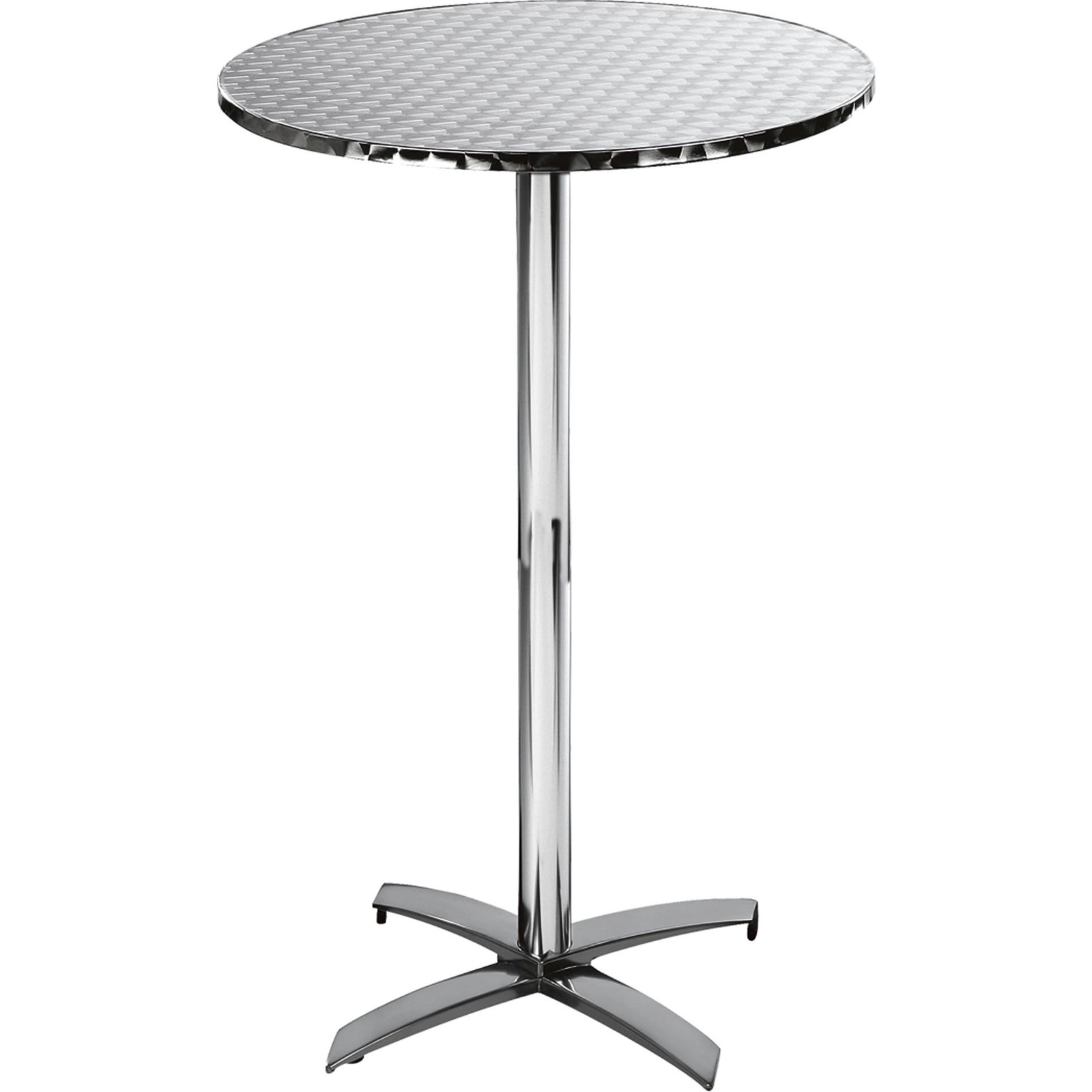 Alu Rohr 60x1,2 mm. Platte Edelstahl, Unterseite MDF, 2 cm stark. 2 höhenverstellbare Füße. Platzsparend: Platte Edelstahl abklappbar, seitlich stapelbar.