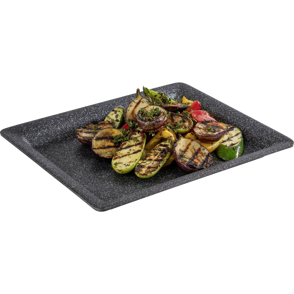 Aluminiumguss, schwarz-silber, antihaftbeschichtet, spülmaschinengeeignet. Temperaturbereich ca. -30 °C bis ca. +200 °C.