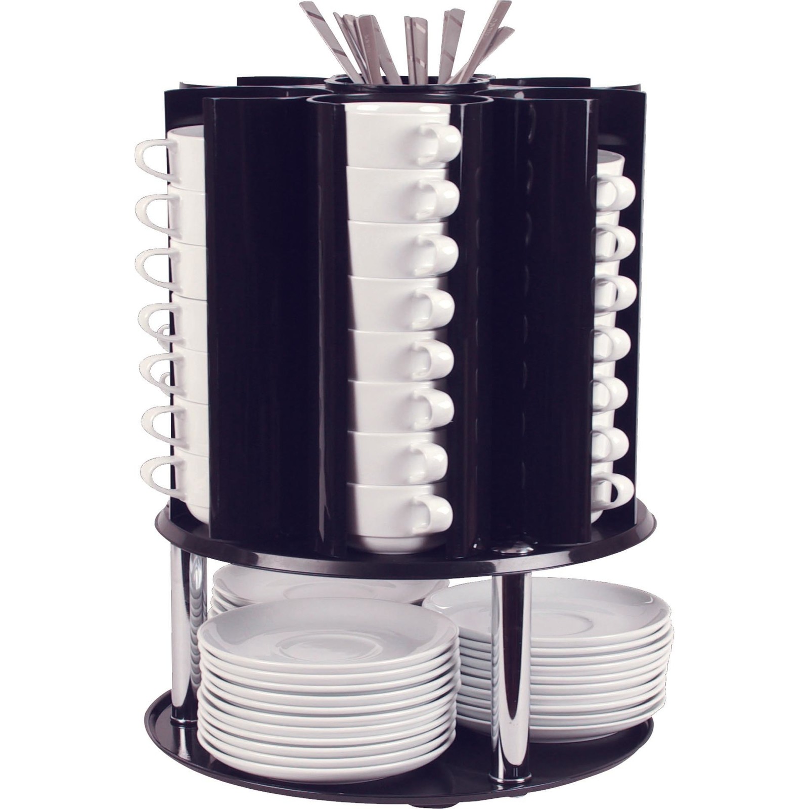 Drehbar, 6 Aussparungen, für ca. 48 Tassen max. Ø 8,5 cm, Untertassen und Löffel. Kunststoff, schwarz.