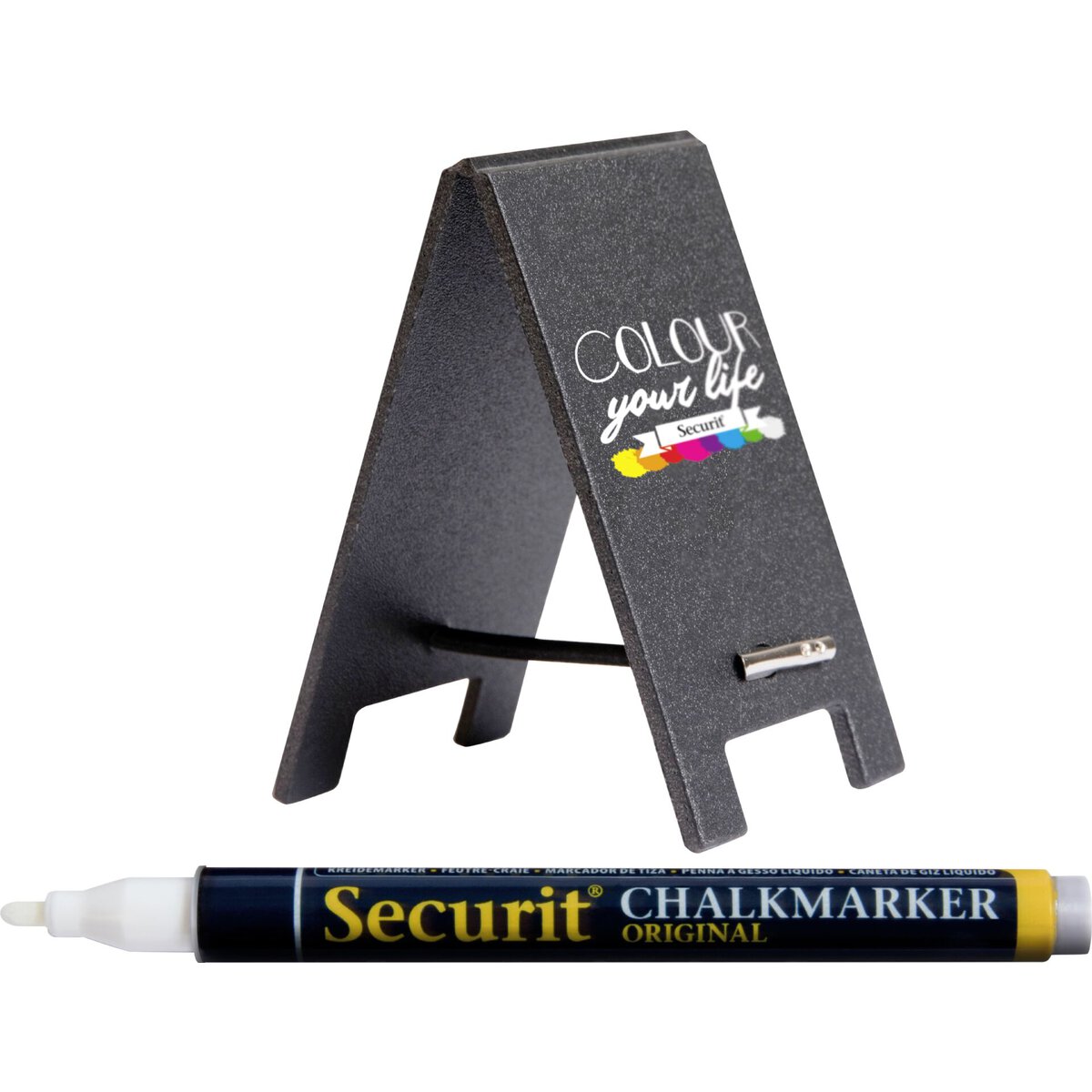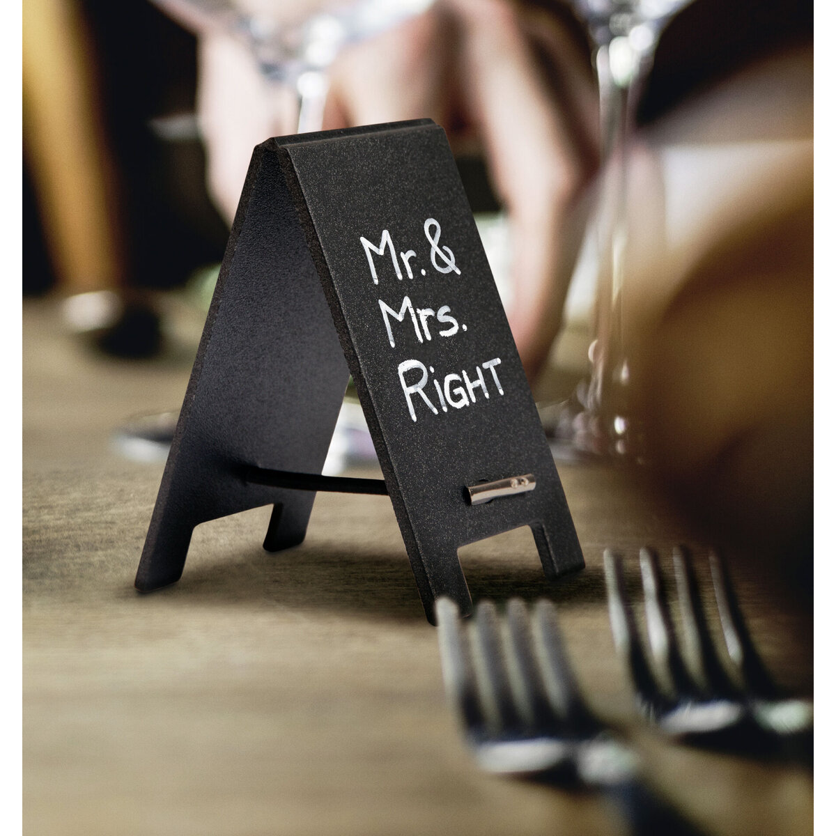 Set besteht aus 5 Tafeln in schwarz, 1 Kreidemarker weiß, Stärke 1-2mm und 5 Gummis zum Befestigen der beiden Seiten. Beschriftung auch mit anderen Kreidemarkern aus unserem Katalog möglich.
