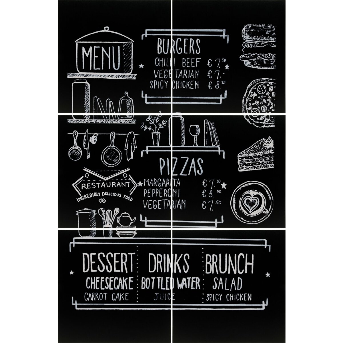 Rahmenlose Tafeln inkl. doppelseitigem Klebeband auf der Rückseite. Vielseitig einsetzbar - individuell aufhängbar. Tafeln sind beschriftbar mit Kreidemarkern aus unserem Katalog. Im 6er Pack.